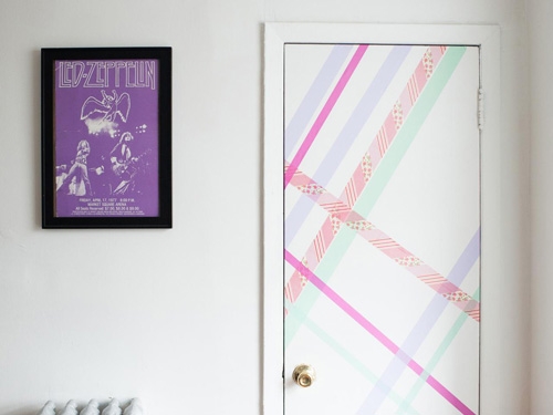 Cái cửa đơn điệu, thiếu sức sống khi chỉ đơn giản một màu sắc duy nhật nhưng chỉ với vài dải băng dính vải nhiều màu sắc sẽ là giúp chủ nhân căn phòng thể hiện cá tính tuyệt vời.