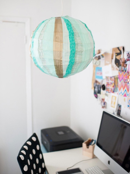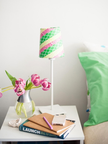 Nếu bạn có dùng đèn ngủ và đã thấy chán với những họa tiết của cái đèn thì có thể cải tạo nó bằng cuộn băng dính giấy để trông vui mắt hơn. Ngoài ra, cũng có thể tạo chiếc đèn lồng treo trong nhà để tạo thêm sự thú vị của căn phòng.