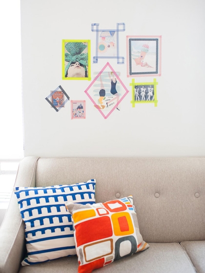 Không cần khung ảnh cầu kỳ đắt tiền làm gì, chỉ với băng dính bạn hoàn toàn có thể tự làm cho mình các khung ảnh nhiều hình dạng màu sắc khác nhau.