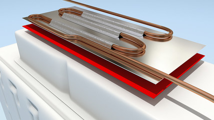 - Gắn giàn bay hơi: Gắn tấm giàn bay hơi trực tiếp vào mặt sau của phần thân polystyrene trên toàn bộ diện tích (100%) để tránh dịch chuyển phần xốp polystyrene sau khi phun.