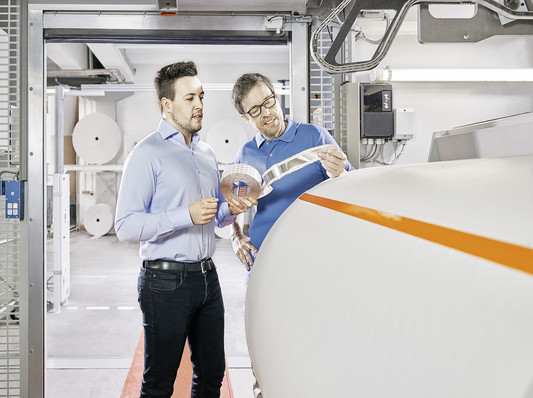 Ngược lại trong in báo, thì vấn đề là ở tốc độ, tức là thời gian tiếp xúc. Ở đây băng dính kết nối vô số cuộn giấy trong thời gian vài phần giây nhằm đảm bảo thực hiện một thay đổi khi đang thao tác và máy vẫn hoạt động ở tốc độ tối đa - quá trình này gọi là “nối di động”. Kỷ lục tốc độ khi đổi cuộn giấy: khoảng 1.900 mét mỗi phút.