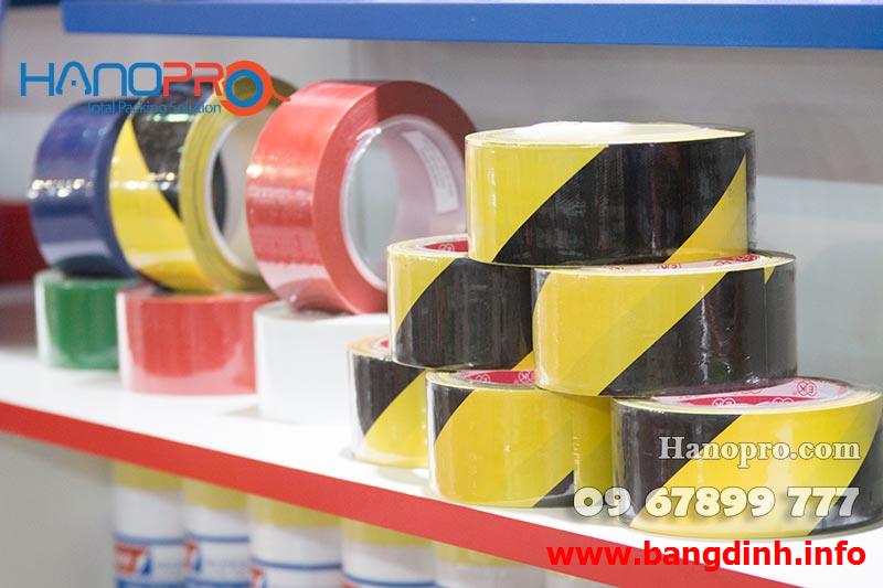 • Một số màu sắc phổ biến của băng dính: vàng, đỏ, cam, xanh, đen, trắng, đen vàng, đen trắng…