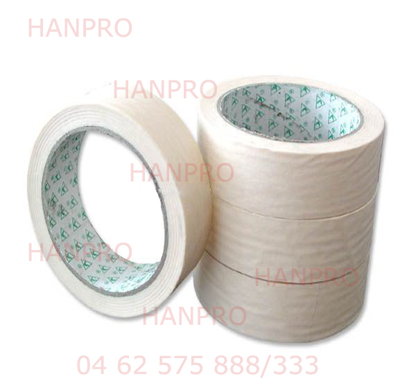 Băng keo giấy nhăn.Được làm bằng chất liệu giấy kếp với lớp keo cao su hòa tan trên một mặt, có khả năng chịu được môi trường nhiệt độ lên đến 80°C.