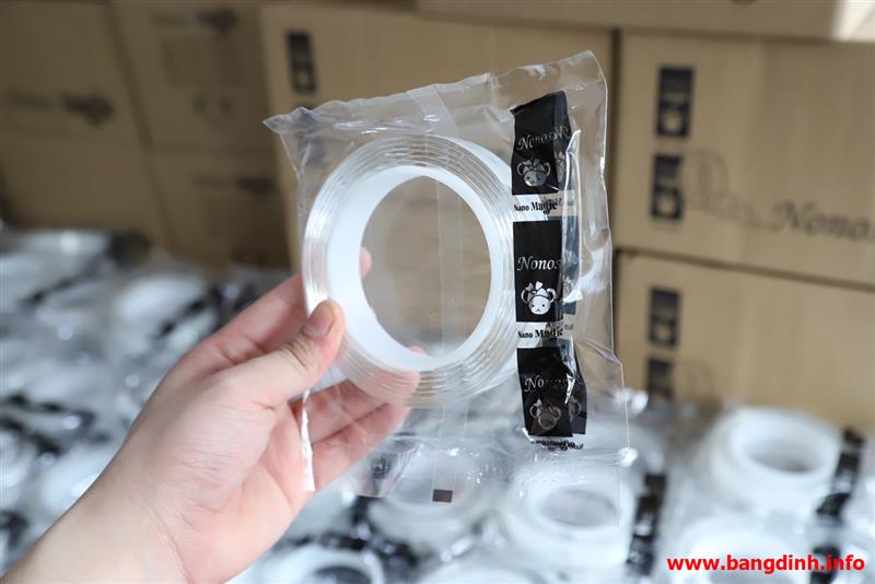 - Acrylic polymer: Chất tạo độ trong suốt cao cho băng dính có tính chất rất bền vững, dẻo và dai. Nó còn có thể dễ dàng dập khuôn, cắt gọt thậm chí uốn cong đóng vai trò quyết định đến sự linh hoạt trong cách sử dụng hàng ngày của băng nonos magic.